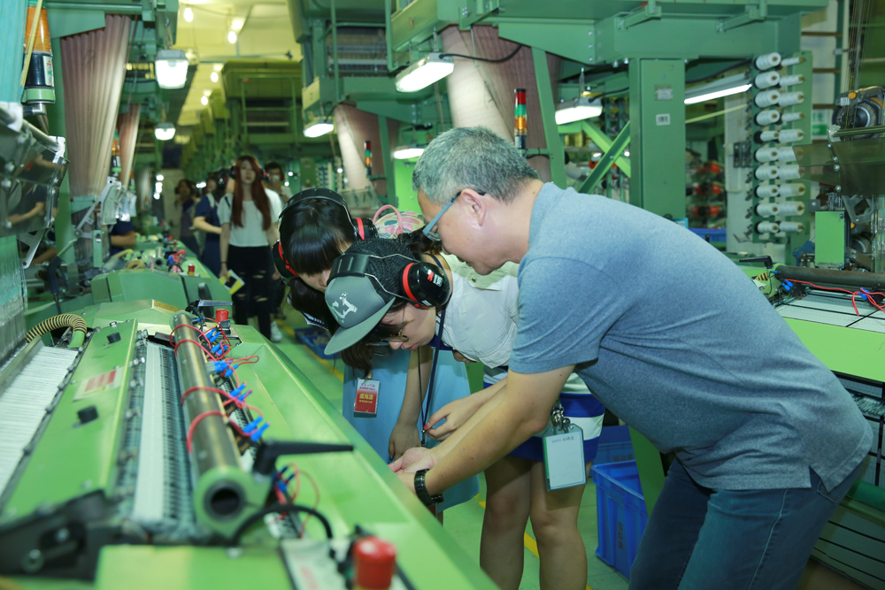 圖:學子在參觀織繡車間期間,積極探研問題」大公報實習記者姚宇欣攝