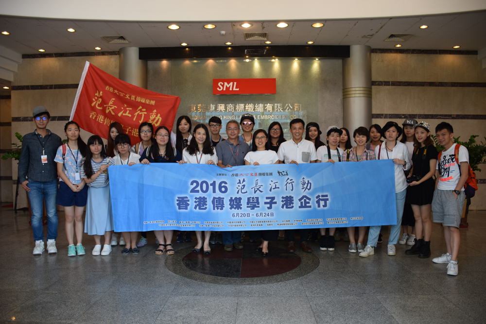 圖:「2016范長江行動港企行」首站參訪SML集團。香港傳媒學子與SML集團管理層合影\大公報記者曹鐀方攝
