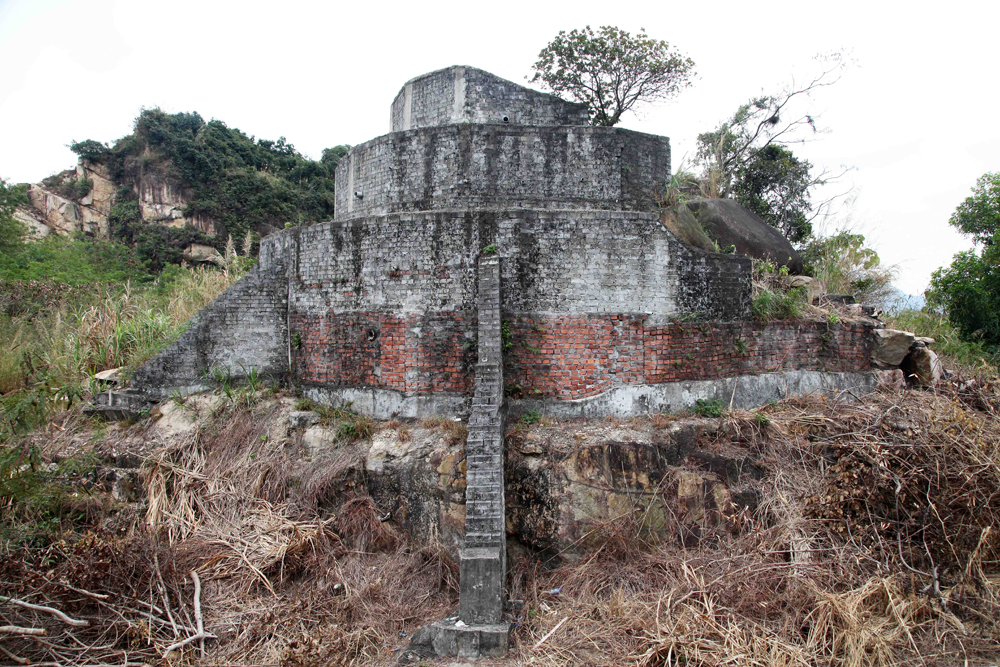 由茶果嶺村往後山走,是昔日高嶺土場舊址所在。這片荒地屹立一座奇特的弧形建築,分三層,用磚築砌,仿似傳說中的巴別塔,又像中美洲的瑪雅金字塔,如此形狀的建築在香港獨無僅有。沿石級登上塔頂,可見一座舊式墳墓,墓碑字體模糊,隱約辨認出「福德公之墓」五個字。