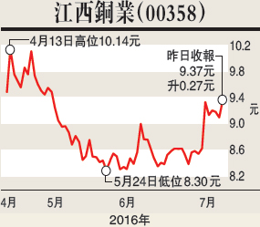 江西銅業股價近日頻頻出現異動,成交亦見增加,主因是內地貴金屬期貨市場做好,令金屬板塊有所炒作,考慮到江西銅業基本因素有改善及有行業重組概念,投資者可訂止蝕跟進,建議於9.35元買入,目標10元,失守100天線支持9元止蝕。