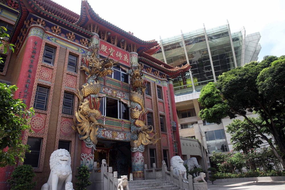 圖:妙法寺的萬佛寶殿及旁邊的綜合大樓