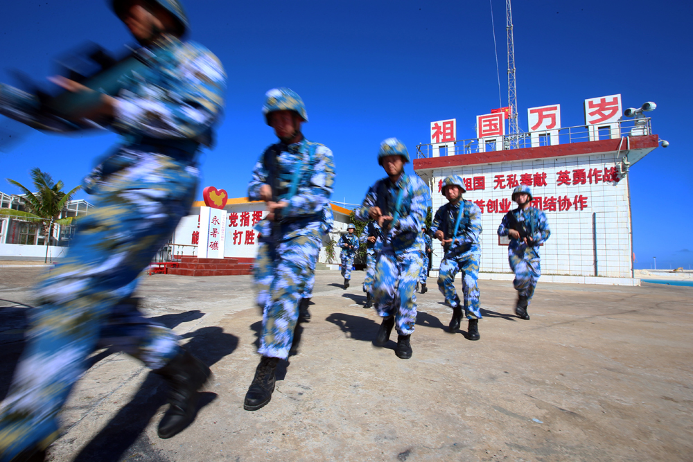 圖:守衛在南沙群島永暑礁上的中國海軍官兵在進行軍事訓練 /資料圖片