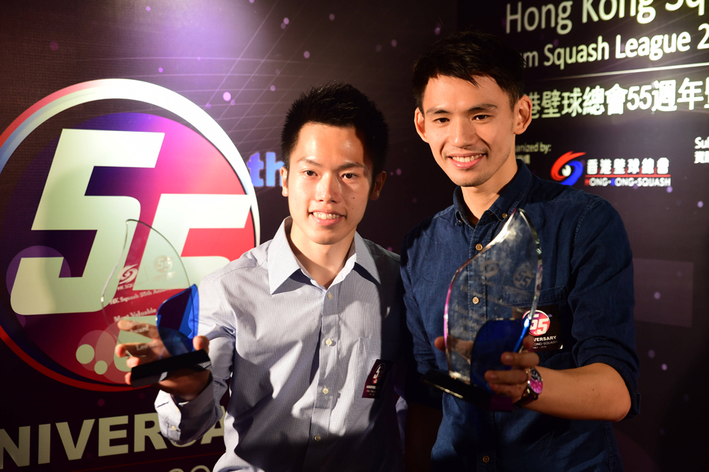 圖:歐鎮銘(左)、李浩賢在香港壁總55周年晚宴獲頒最有價值球員獎
