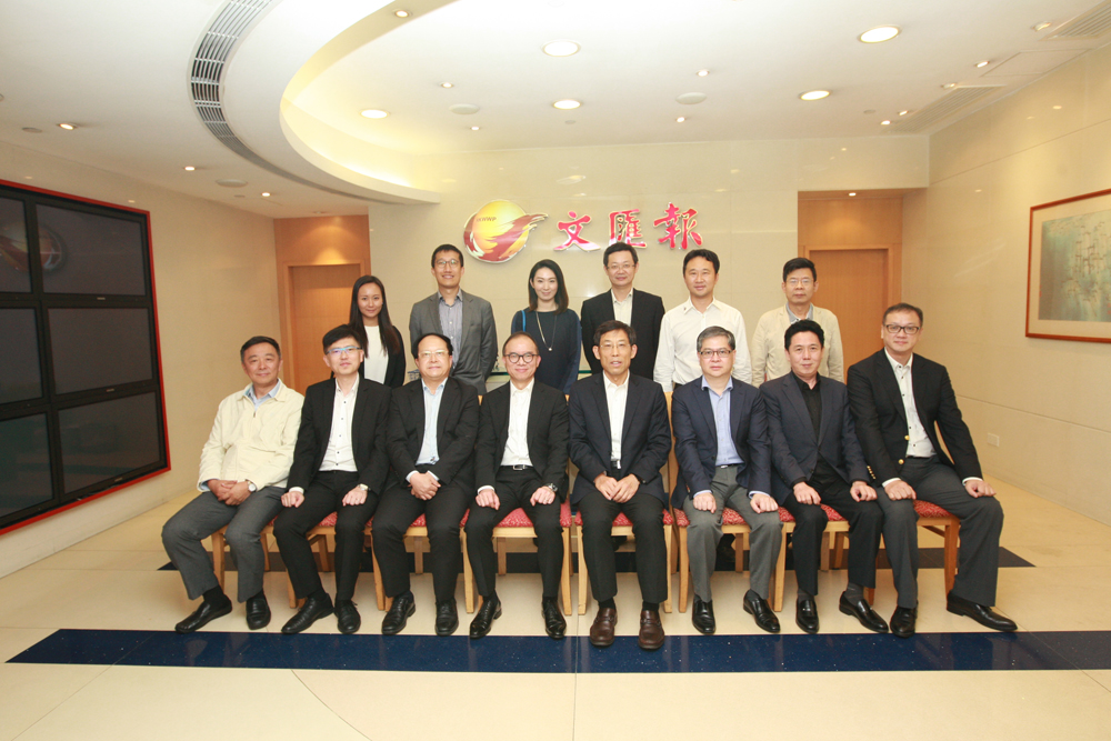 圖:入境處處長曾國衞(前排左四)、副處長羅振南(前排右三)一行到訪香港大公文匯傳媒集團,受到本集團董事長姜在忠(前排右四)、副董事長李大宏(前排左三)、副董事長歐陽曉晴(前排右二)、董事姜亞兵(前排左一)等熱情接待