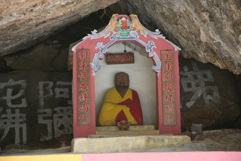 杯渡禪師為何許人?文獻沒有詳細記載,他原籍印度還是中國亦不清楚。相傳他在杯渡山的石洞修道,後人雕刻一尊僧人石像置於洞中。但現在原物已失,所見的估計於清末民初仿造。