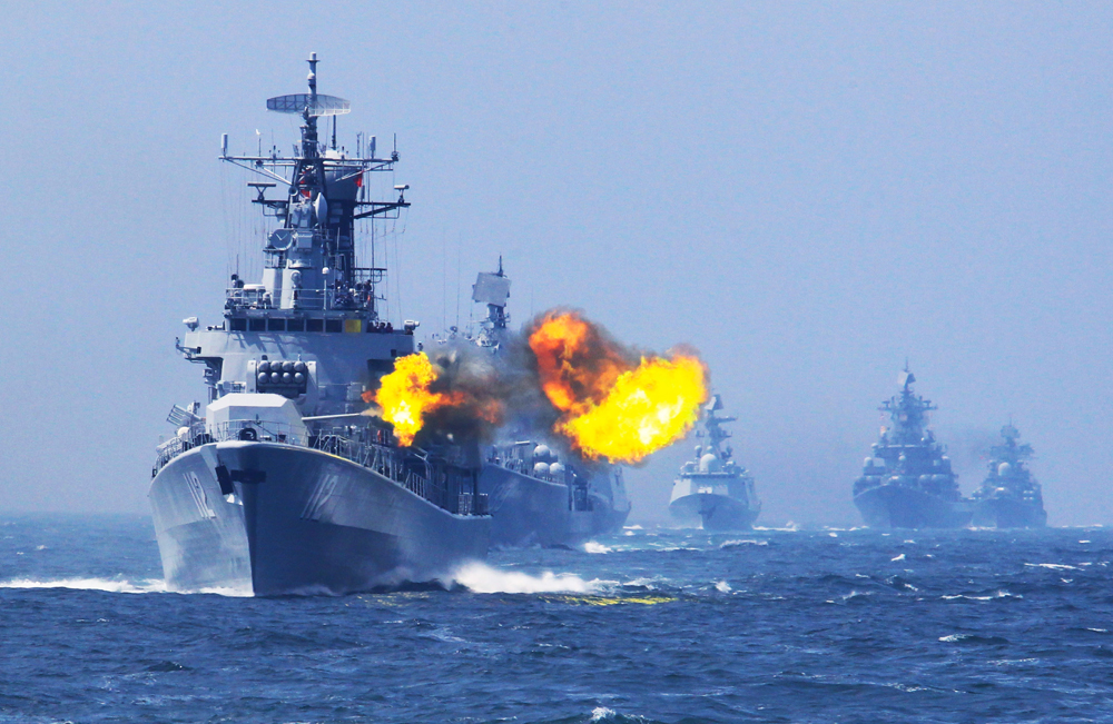 圖:「哈爾濱」號導彈驅逐艦(舷號112)在「海上聯合-2014」對海上目標實彈射擊\資料圖片