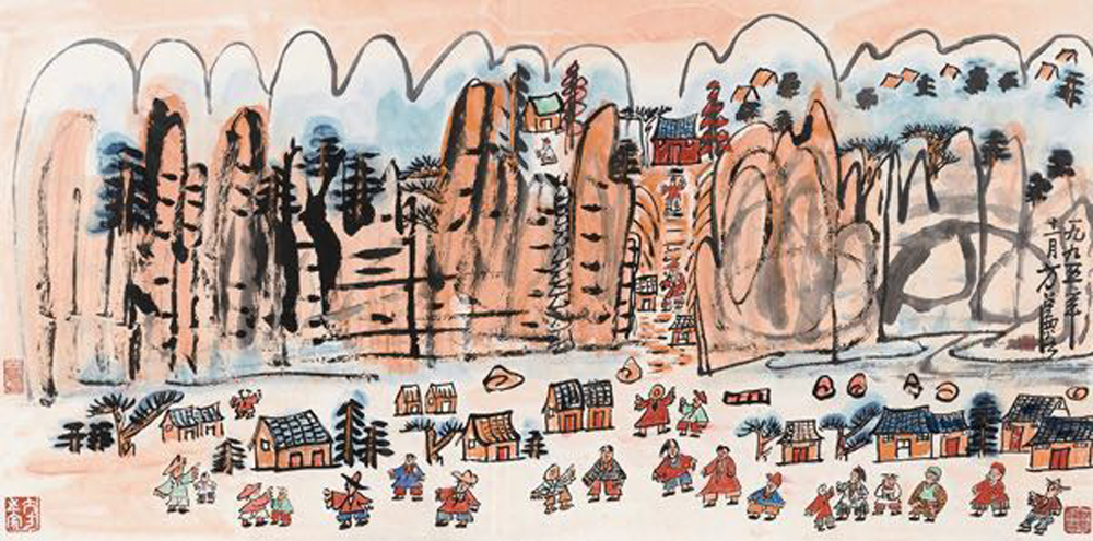 她將所有東西都拙起來,認為這才是物質的原性。拙人、拙屋、拙樹、拙禽、拙山、拙水、拙舟,統合起來是黃河文化,把你帶進故鄉的回憶。中國畫好像還沒有「鄉土派」,我想,只要散發這種鄉土氣息,就夠了,但容易嗎?