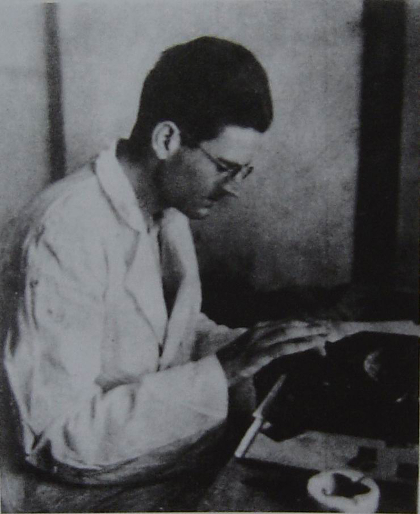 圖:一九四二年,傅萊在白求恩衛生學校,用白求恩留下的打字機備課