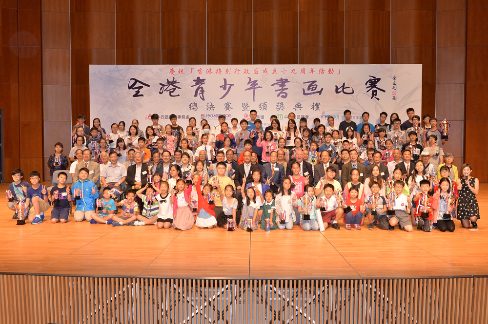 【大公報訊】由通善壇、香港大學專業進修學院、中西區區議會、中西區民政事務處、香港大學職員協會聯合主辦的「慶祝香港特別行政區成立19周年活動暨全港青少年書畫比賽總決賽及頒獎典禮」日前在香港大學舉行,比賽吸引了逾4000名青少年學生參加。一眾社會各界嘉賓出席頒獎禮,多位書畫名家即席揮毫,現場洋溢着濃厚的中華文化氣息。