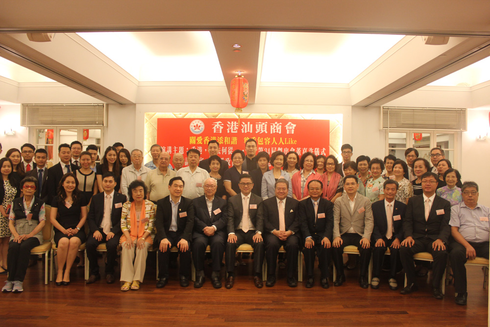 圖:香港汕頭商會邀胡定旭演講,賓主合照 大公報實習記者蘇莉攝