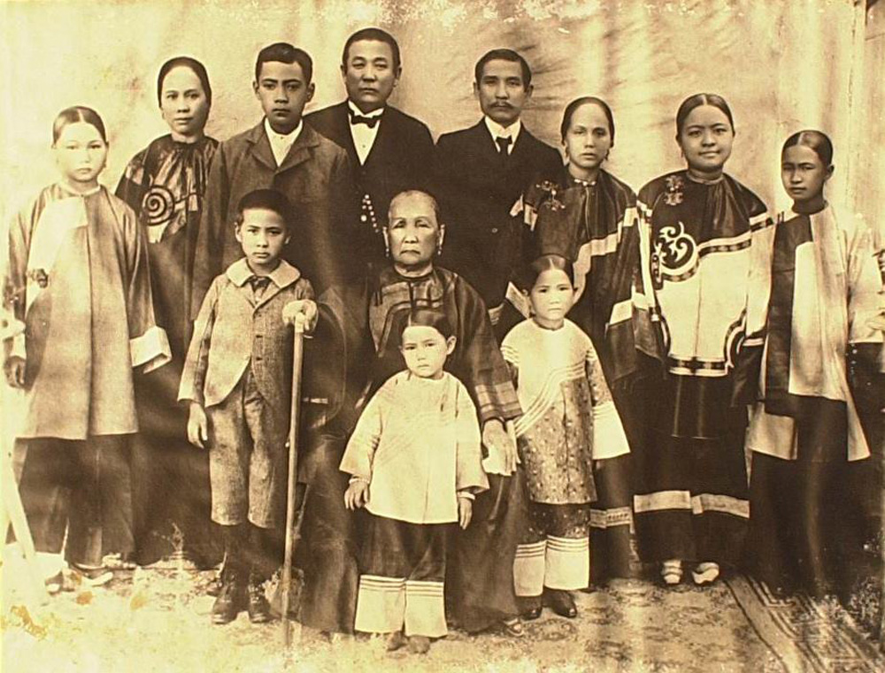 圖:一九○一年孫中山(後排右四)在夏威夷與家人合照,前排中坐者為楊太夫人