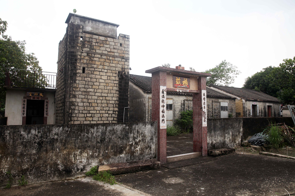 更樓旁邊的祠堂名「成邦堂」,門聯寫上「弘農傳世宅,清白振家聲」。弘農郡的範圍在今天河南省西部和陝西省東南部,楊氏是該郡望族之一,始自西漢丞相楊敞,可見白沙村楊氏源遠流長,家世顯赫。祠堂神位寫上「弘農楊門堂上歷代祖先」,有人上香打理。後人已遷往附近的村屋居住,舊屋人去樓空,更樓亦長年廢置。