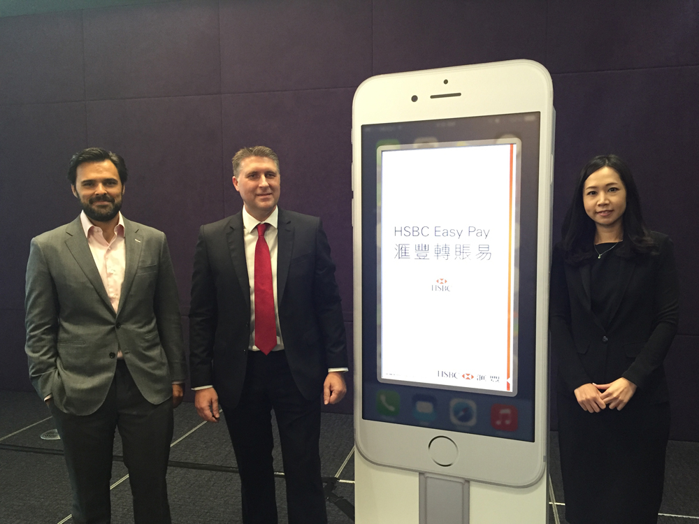 圖(左起)滙豐香港區零售銀行及財富管理業務電子服務平台主管艾俊安、業務主管欣格雷及電子服務平台高級經理張瑞欣