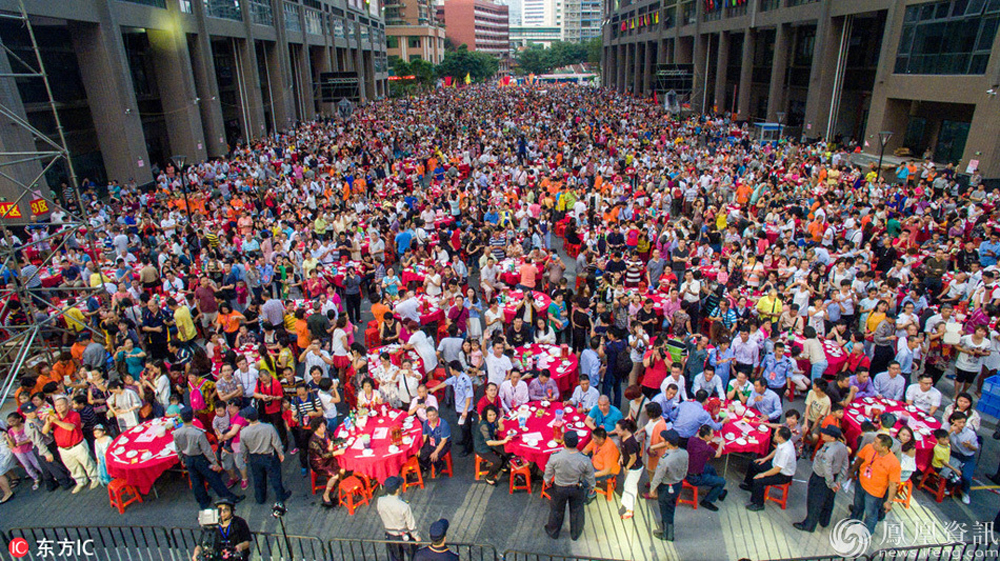 □2日,廣州著名的改造城中村楊箕村迎來回遷入伙之日,千圍宴慶典在新居大樓下舉行。村民慶祝方式可謂十分「土豪」,現場筵開1500席,並從廣東粵劇院請來三大粵劇名角粉墨登場,讓村民可以邊吃宴席邊看戲。據悉,楊箕村地處廣州中心商業區核心,村民每戶平均分得4套以上房屋,家家坐擁千萬資產。\大公報記者敖敏輝廣州報道