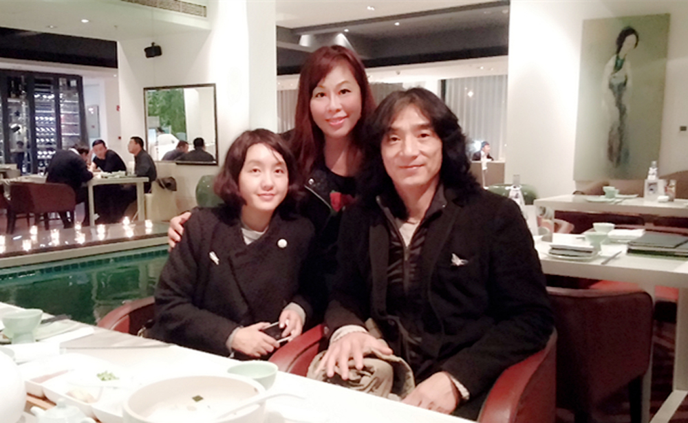 圖:梁安琪(中)與唐朝主音歌手丁武(右)及唐朝經理人楊婷(丁武太太)合照/大公報記者陳惠芳攝