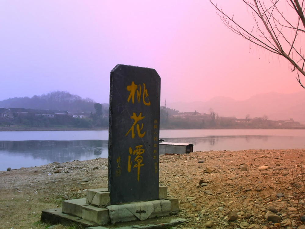 桃花潭位於安徽省涇縣縣城西南四十公里處,在黃山之北,西接佛教聖地九華山,與太平湖相連。唐天寶十四年,詩人李白應涇州(即現在的涇縣)前任縣令且遷居於桃花潭的汪倫之邀而暢遊桃花潭,其間,汪倫常以自家釀的美酒款待他。臨走時,汪倫又來送行,於是李白寫下了膾炙人口的千古絕唱《贈汪倫》:「李白乘舟將欲行,忽聞岸上踏歌聲。桃花潭水深千尺,不及汪倫送我情。」從此桃花潭景區聞名遐邇,文人墨客紛至遝來,追尋李白蹤跡。後人為紀念李白,在汪倫踏歌送別之處建造了「踏歌古岸閣」,在桃花潭西岸建造了「懷仙閣」。如今桃花潭已是國家4A級景區,自然景觀、人文景觀與古建築群交相輝映,步步有景,四季景色宜人,遊人如織,欣賞不盡那「踏歌古岸、東園古渡、桃潭煙波、玉屏滴翠、彩虹暉霞、嶙峋怪石」等勝景風姿。