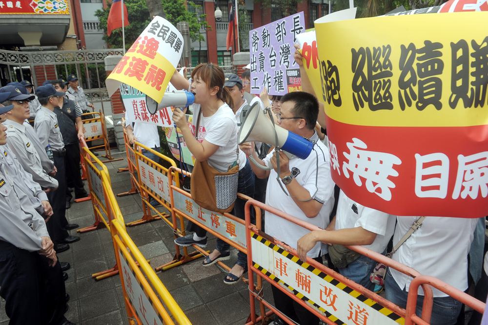 圖:新北市與桃園市就業服務商業同業公會近百人21日遊行,抗議《就服法》修正通過將增加僱主負擔\中央社