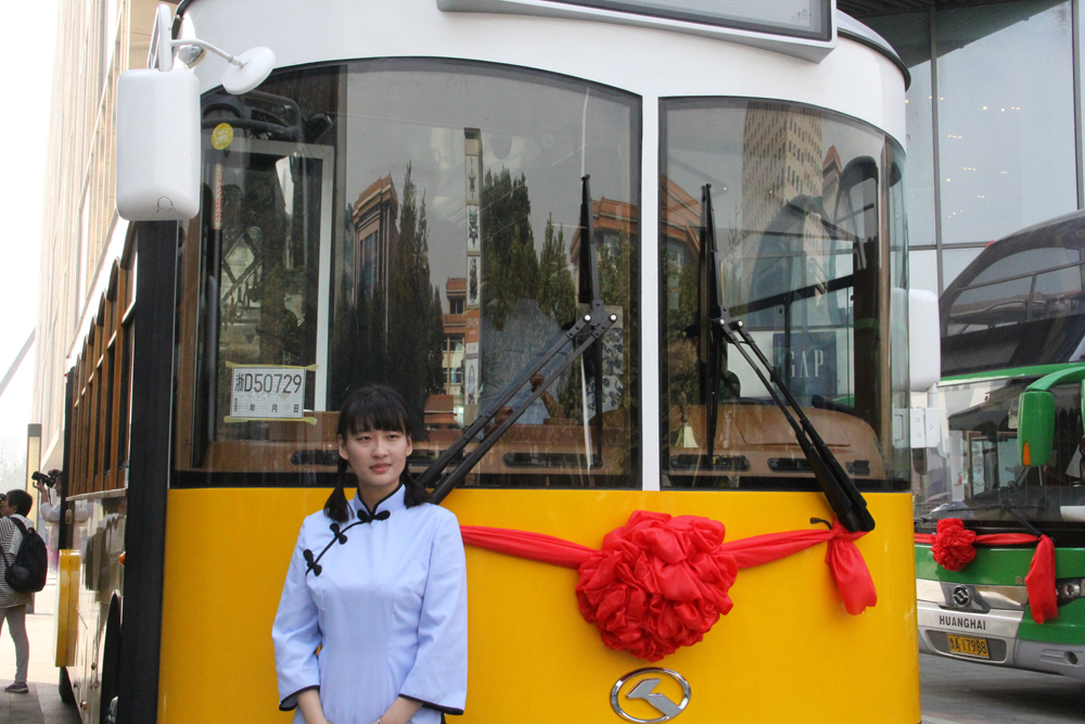 9月30日上午,濟南公交遊777路鐺鐺車正式營運,百名乘客乘車迅遊,體驗了一把以「夢迴濟南府」為主題的穿越之旅。