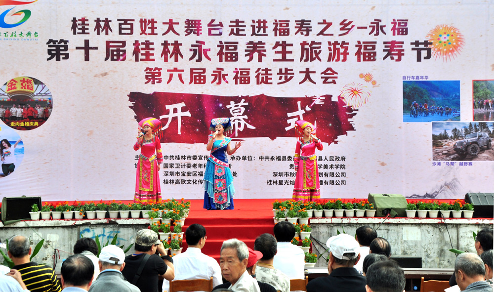 圖:廣西打造10個健康養老小鎮。圖為該省永福縣第十屆福壽節開幕式\大公報攝