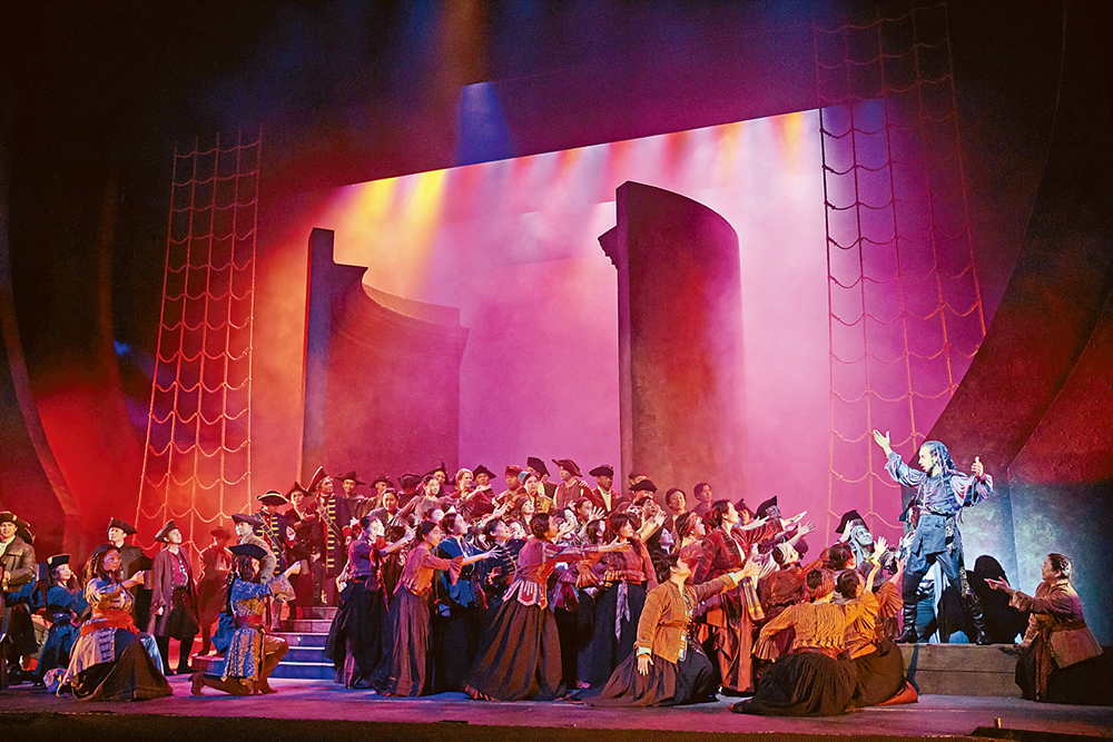 圖:由香港歌劇院合唱團團員飾演的民眾及大奸角亞哥