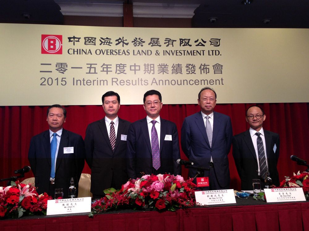 圖:郝建民(中)突辭任中國海外主席兼行政總裁,並由高級副總裁肖肖(右二)接替其職位,證券界為此作出諸多揣測,反應負面/資料圖片