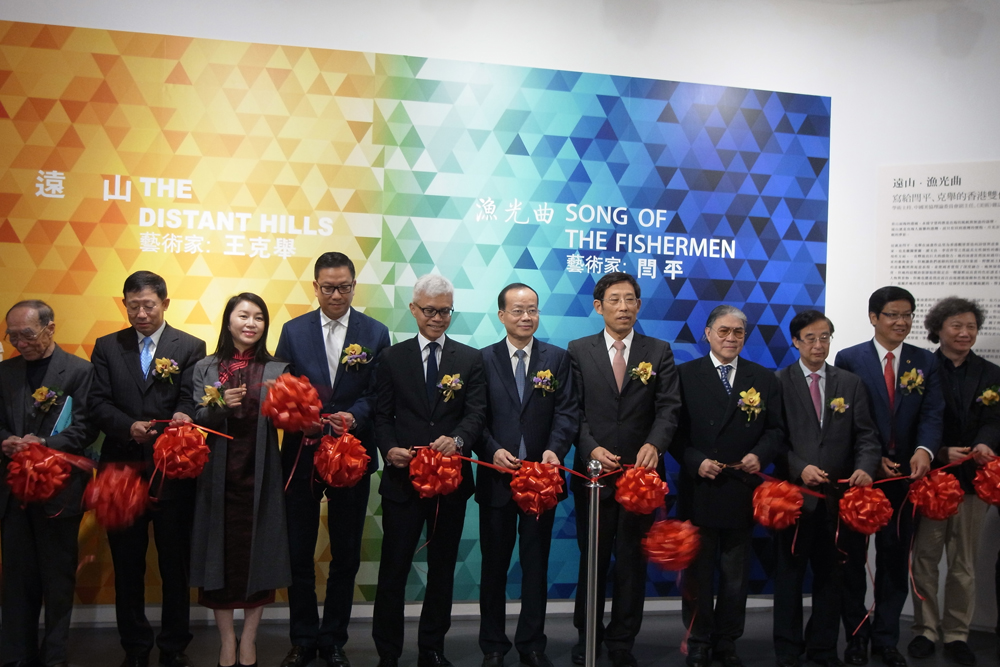 中聯辦副主任楊健、全國政協委員霍震霆、康樂及文化事務署副署長吳志華、新華社亞太總分社社長俱孟軍、香港大公文匯傳媒集團董事長姜在忠、香港中華廠商聯合會永遠名譽會長施榮懷、中銀國際控股有限公司執行總裁李彤、中國建設銀行(亞洲)股份有限公司副董事長兼行長江先周、中國人壽保險(海外)股份有限公司副董事長、總裁劉安林、中國畫學會香港永遠會長王無邪等嘉賓出席開幕禮並剪綵。