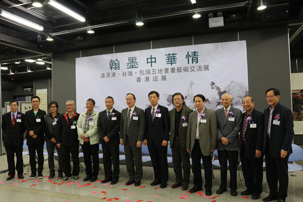 【大公報訊】記者梁舒婷報道:由香港新華書畫院主辦的「『翰墨中華情』─港深澳·台灣·包頭五地藝術交流展」於昨日起在上環文娛中心六樓展覽廳舉行,展出五地書畫家近一百幅書畫作品,部分參展畫家昨日齊出席開幕式並現場揮毫筆會。