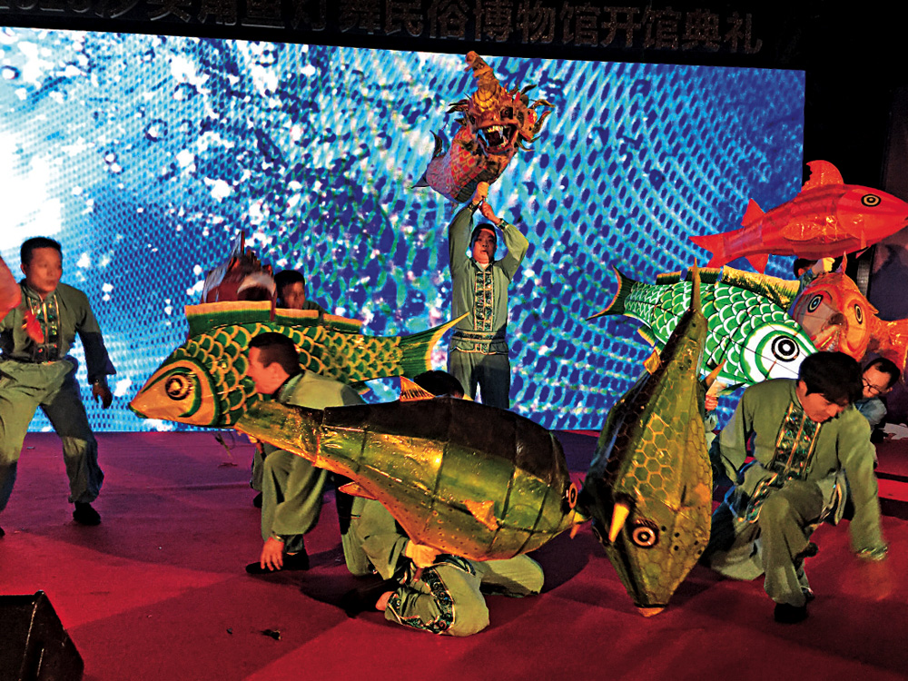 圖:魚燈舞民俗博物館開館儀式上,有魚燈舞精彩表演