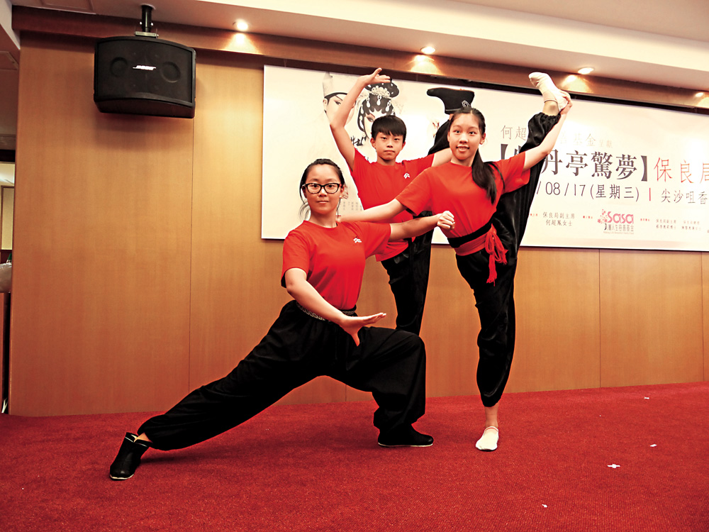 圖:八和粵劇學院青少年學生展示功架 大公報記者湯艾加攝