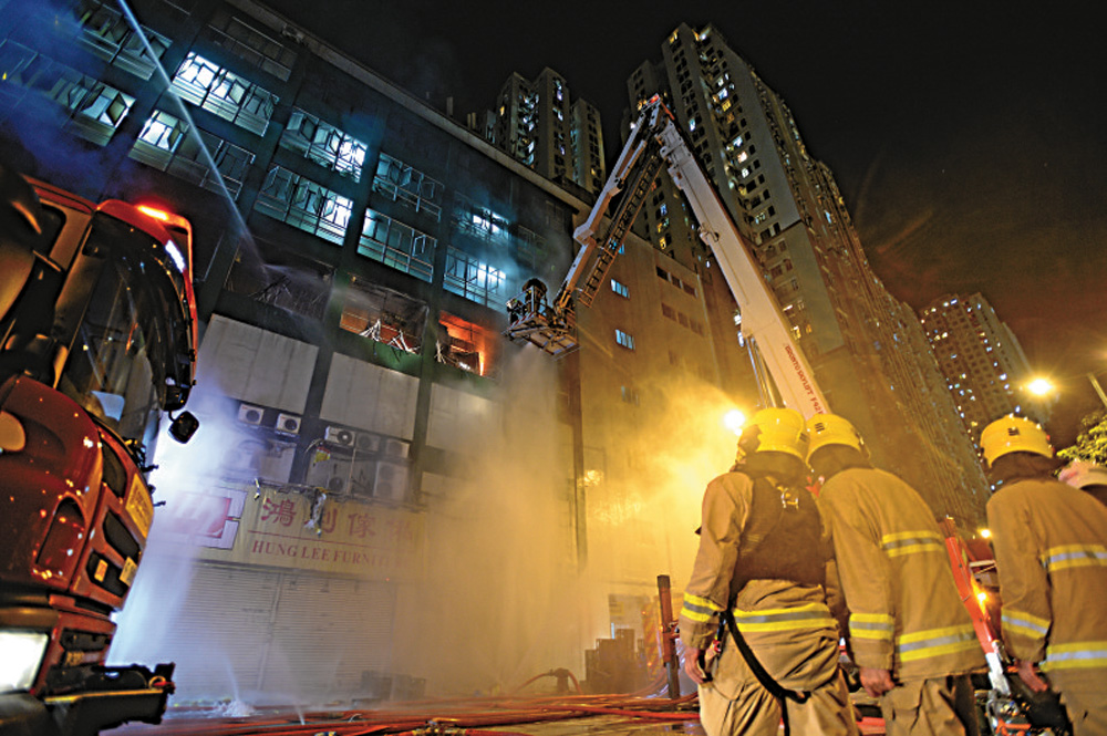 圖:淘大工業村迷你倉大火,燒108小時,導致兩消防員不幸殉職