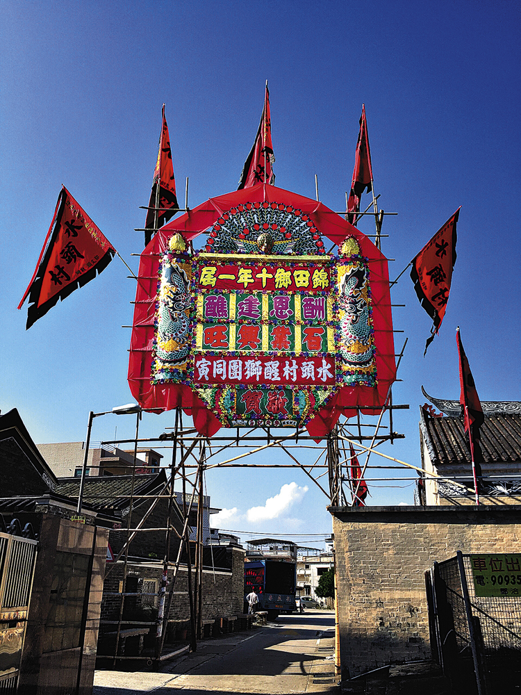 圖:本地圍村為慶祝節慶而搭建的花牌\黎俊霖供圖