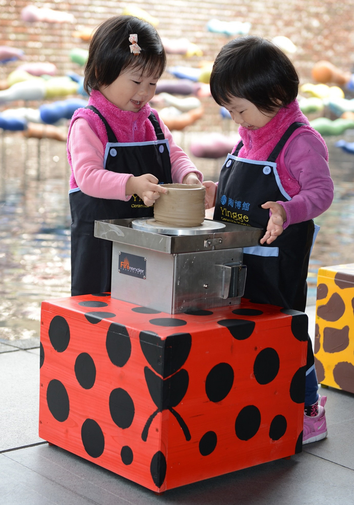 鶯歌陶瓷博物館元旦4天連假不休館,限時推出適合小朋友玩的「迷你拉坯機」體驗活動。 中央社