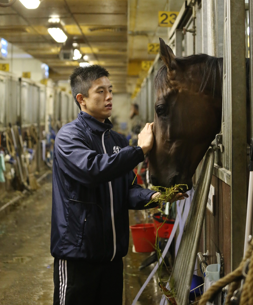 □On Call 365日,不論風雨。他說,能教好身邊的「小朋友」,就很滿足。他不是醫生,但勝似醫生,觀察「小朋友」日常舉動去了解他們身體狀況;他也不是老師,但亦勝似老師,根據「小朋友」不同個性而訓練。他是前練馬師伍碧權的兒子,八年間連升四級、上季剛擢升為助理練馬師的伍鵬志。他坦言父親的「光環」讓他有壓力,自己能逐漸得償所願的秘訣是「苦幹」。上月,他取得當助理練馬師後首項的國際大獎。