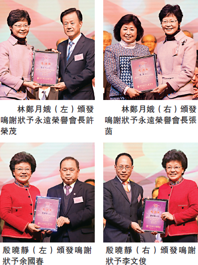 當晚,該會首長向「佔中」期間恪盡職守的香港警隊贈送錦旗,表達敬意。余國春表示,困擾香港兩個多月的「佔中」,一開始就是違法行動,損害香港經濟、民生,衝擊法治,嚴重影響香港國際形象和聲譽。特區政府和警方全面清場,還路於民,恢復社會秩序,是順應民意、維護法治之舉,是對法治精神的踐行,更是對香港700萬市民負責之舉。同場,該會並向國僑辦的「僑愛工程•雲南魯甸農民職業技術中心」項目捐贈260萬港元善款。
