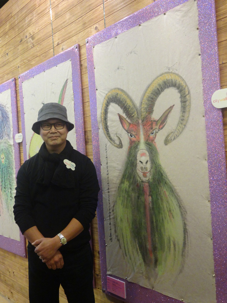 提早退休的蘇五雲,常年在中環荷李活道露天畫廊從事繪畫創作。今次所繪水墨羊,色彩艷麗,結合傳統藝術和現代幽默的水墨技法,充滿奇趣創作意念。與其說他在畫羊,不如說他以羊作為載體,模擬世間百態。