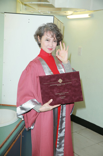 蕭芳芳(芳芳姐)、鍾景輝昨日獲理工大學頒發「2014╱2015年度大學院士」,二人出席了頒授典禮,芳芳姐的老公張正甫也有出席支持。芳芳姐在台上致辭時,分享了浪人與茶師的故事。她說:「好多謝理大給我這份榮譽,鞭策我不斷學習這位茶師心靈的勇敢,我才能把護苗基金保護兒童的這杯茶沖好。」