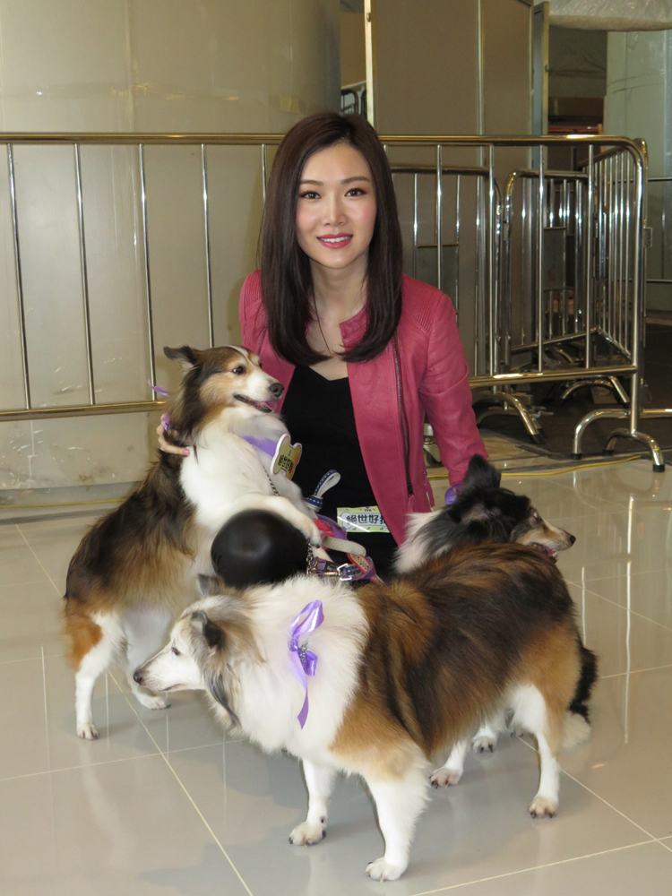 圖:翠翠帶同三隻十二歲迷你牧羊犬出席活動