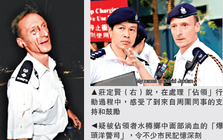【大公報訊】記者陳璁報道:在去年「佔領」行動期間,疑被示威者水樽擲中面部淌血的「爆頭洋警司」,令不少市民記憶深刻。警察公共關係科昨日就上載一段訪問該名高級警司莊定賢(David Jordon)的影片,由警司親身講述參與處理「佔領」行動的感受和體會。