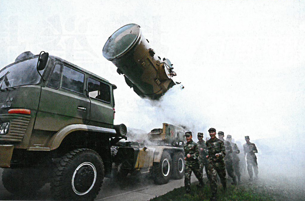 近日,央視對二炮某導彈旅最近一次對抗演練報道中,出現一輛藍色塗裝的導彈運輸車。有軍事專家判斷,車上運載的是「東風21」彈道導彈。《解放軍報》有關報道則描寫道:「千人百車,千里機動,官兵在雪原腹地,以全要素全天候全流程實戰化演練的優異成績迎接新年的到來。」