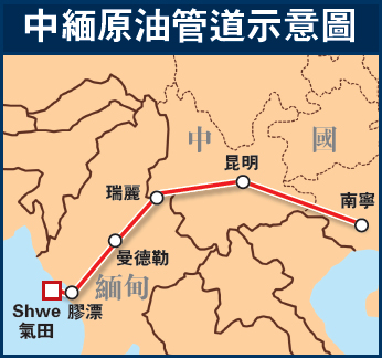 【大公報訊】中緬原油管道及一座深水碼頭預定1月底啟用。該原油管道使中國進口中東原油不必再經馬六甲海峽,而可自印度洋安達曼海的緬甸若開邦馬德島上岸,經該管道輸送至中國西南地區。中國國內的一座配套煉油廠還需要幾個月才能完工。
