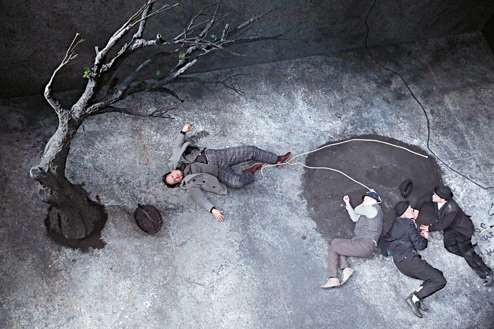 除了兩位流浪漢角色,《等》劇的奴隸主人Pozzo和僕役Lucky都甚有象徵意義。前者表現資本家的剝削和壓榨行為,後者像是身心疲憊但思潮起伏的勞動階層,該兩個角色在下半場的極端變化,令觀眾帶來極大的心靈震撼。現時米高.皮舒圖和本.馬格烈分飾Pozzo和Lucky,與紀文舜和李鎮洲合成恍如四重奏演唱的聲調,當中尤以紀文舜的男高音、李鎮洲的男中音和米高的男低音,組成了抑揚頓挫的語調,將全劇言簡意賅,時而重複的台詞,建構成一首悲喜交集的荒誕人生曲。