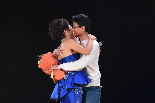 當Frances以英語感激外籍老公時,她的兒子突然上台獻花,Frances又驚又喜,二人連環親吻,她感動得眼濕濕,場面非常溫馨。