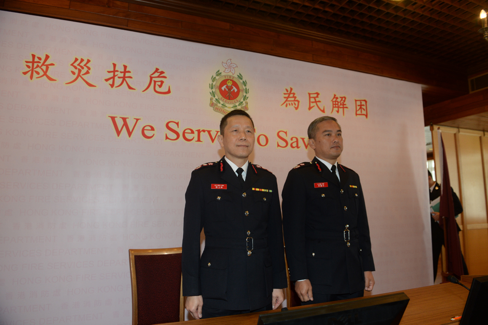 圖:消防處處長黎文軒(左)表示,調查小組稍後就石硤尾?氣爆事件向警方交報告。右為副處長李建日 本報記者林良堅攝