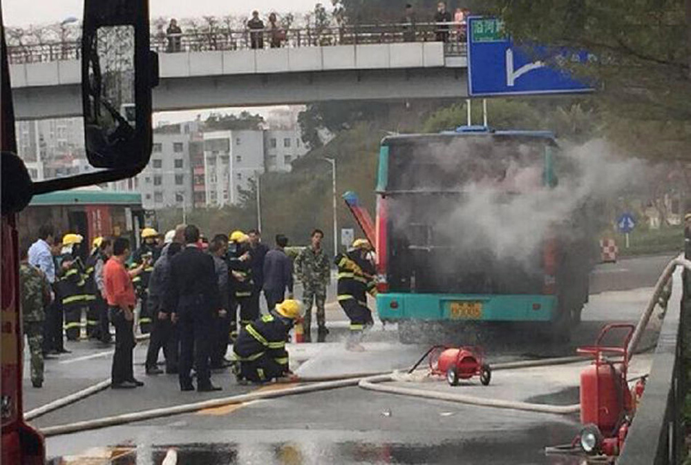 圖:1月30日上午,深圳市羅沙路上一輛公交車?火,深圳黃貝嶺消防中隊官兵趕赴事發現場,經過一個半小時的撲救,大火被撲滅。此次事故沒有造成人員傷亡 網絡圖片