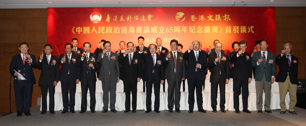 □由香港友好協進會與香港文匯出版社共同編輯出版的《中國人民政治協商會議成立65周年紀念畫冊》1月29日在灣仔會展隆重舉行首發式。解放軍駐港部隊副政委儲茂華少將,政制及內地事務局局長譚志源,中聯辦協調部部長沈沖、港島工作部部長吳仰偉出席主禮。香港友好協進會會長、全國政協常委戴德豐以及香港文匯報董事長兼社長王樹成及港區全國人大代表、全國政協委員、中華海外聯誼會成員以及各界名人近300人一同見證有意義的一刻。\大公報記者 張藝博