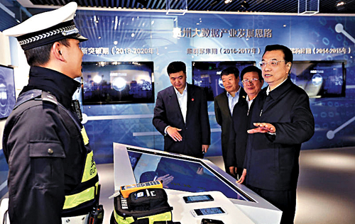 圖:李克強14日考察北京.貴陽大數據應用展示中心時稱,把執法權力關進「數據鐵籠」,讓失信市場行為無處遁形,權力運行處處留痕/網絡圖片