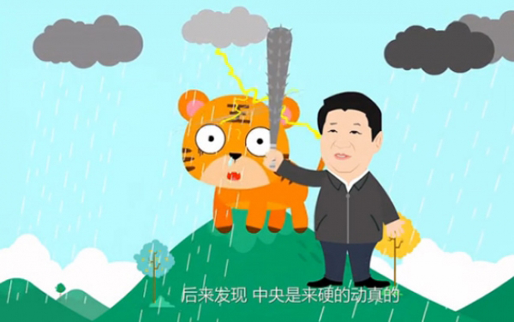 圖:習近平揮棒「打虎」動漫畫面 網絡圖片
