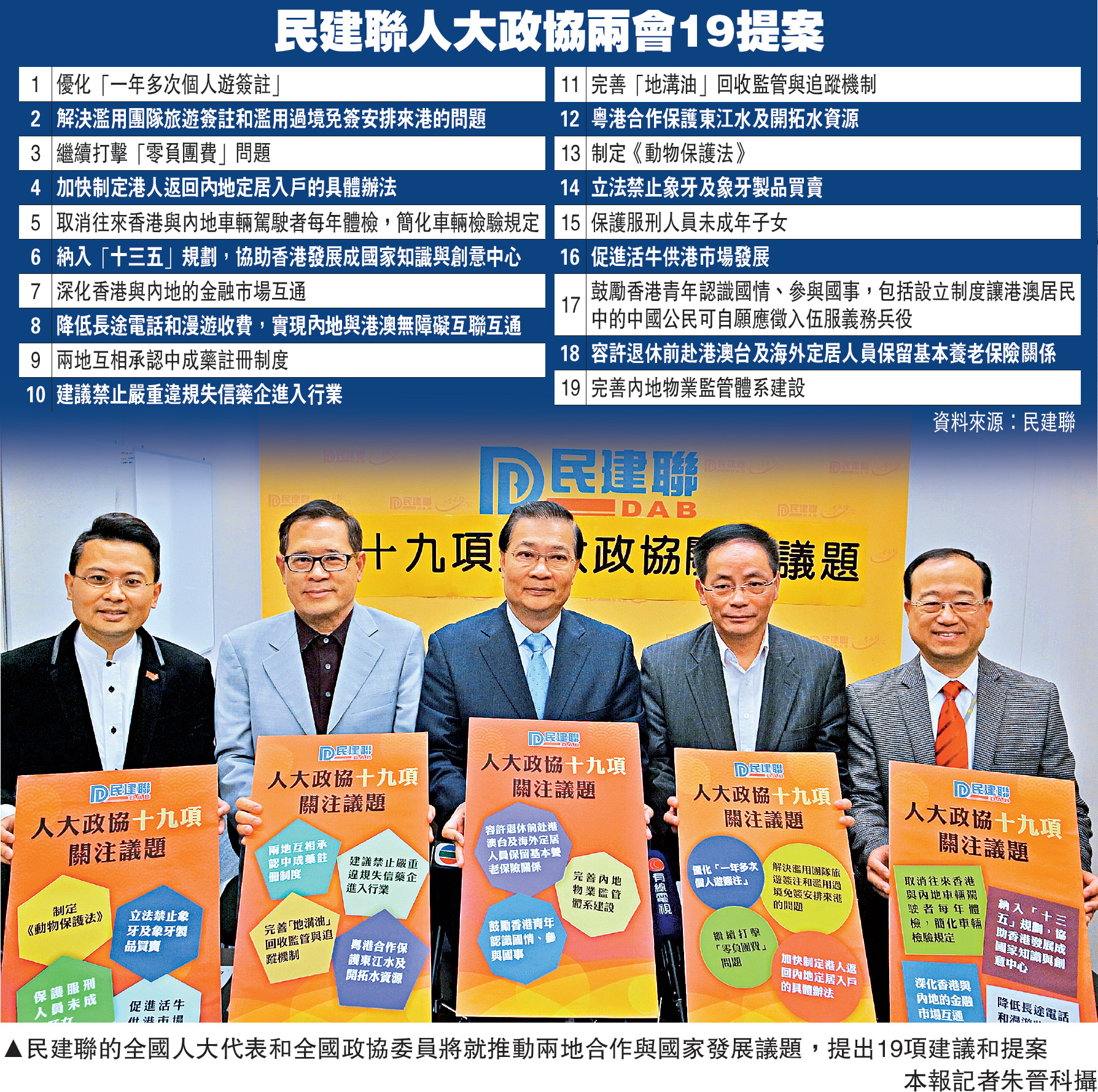 圖:民建聯的全國人大代表和全國政協委員將就推動兩地合作與國家發展議題,提出19項建議和提案  /本報記者朱晉科攝