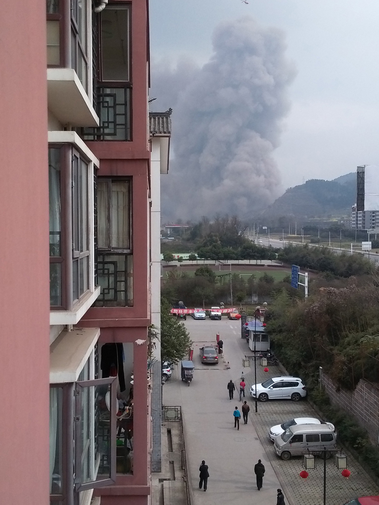 據洛帶古鎮居民張先生說,爆炸聲音從鎮旁邊的山腳傳來,然後洛帶的北面山腳就有濃煙冒出,「就像蘑菇雲,在幾公里外都看得到。」爆炸發生後,當地下起灰塵雨,汽車和途人身上都是灰塵。