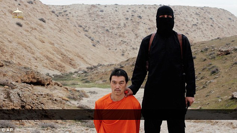 圖:「聖戰約翰」(右)出現在斬首日本人質後藤健二的視頻中 資料圖片